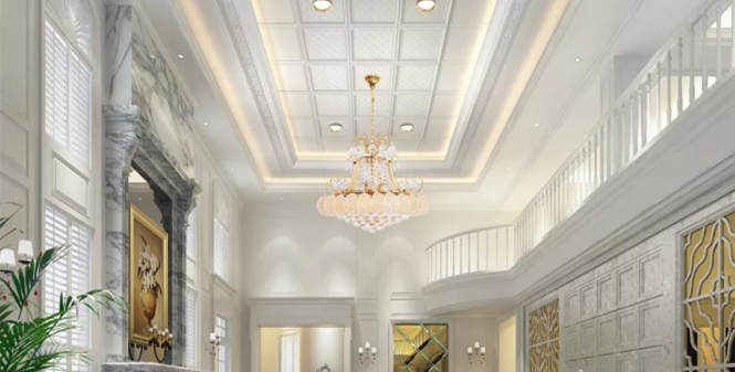 挑高客廳的空間大,如果頂部裝飾少,會顯得很空洞。可以在頂部裝上集成吊頂,來彰顯你的品味。注意在選擇集成吊頂?shù)臅r候要和家中的整體風格進行匹配。