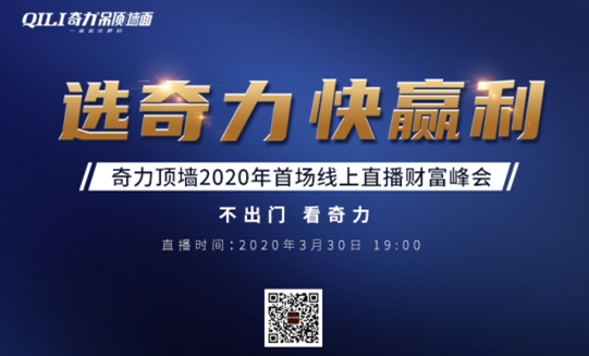 “選奇力 快盈利” 奇力頂墻2020首場線上直播財(cái)富峰會(huì) 2020年3月30日19:30, 不出門,看奇力! 讓我們一起走向財(cái)富巔峰!