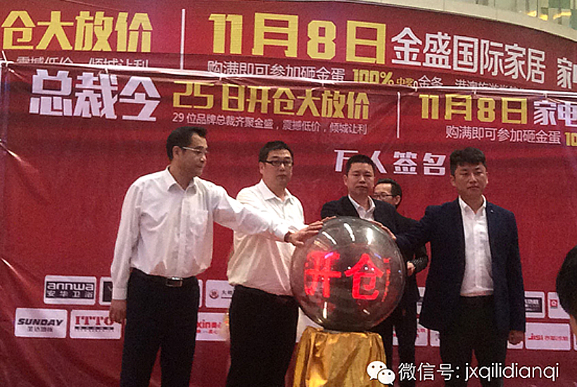 在主持人熱情洋溢的組織下,30位廠商總裁紛紛作出最大力度的“放價(jià)”承諾。奇力吊頂國內(nèi)營銷總裁邱美杰先生應(yīng)邀作為啟動嘉賓,啟動了象征活動開啟的啟動球。