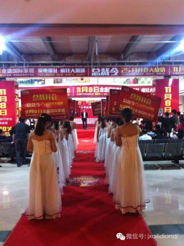 10月25日,金盛國際家居,遠(yuǎn)遠(yuǎn)看見兩列青春靚麗的迎賓小姐。更有數(shù)不勝數(shù)的金蛋陳列。而30位總裁也在60輛奔馳車隊(duì)的護(hù)送下,穿過揚(yáng)州城區(qū),抵達(dá)會場。