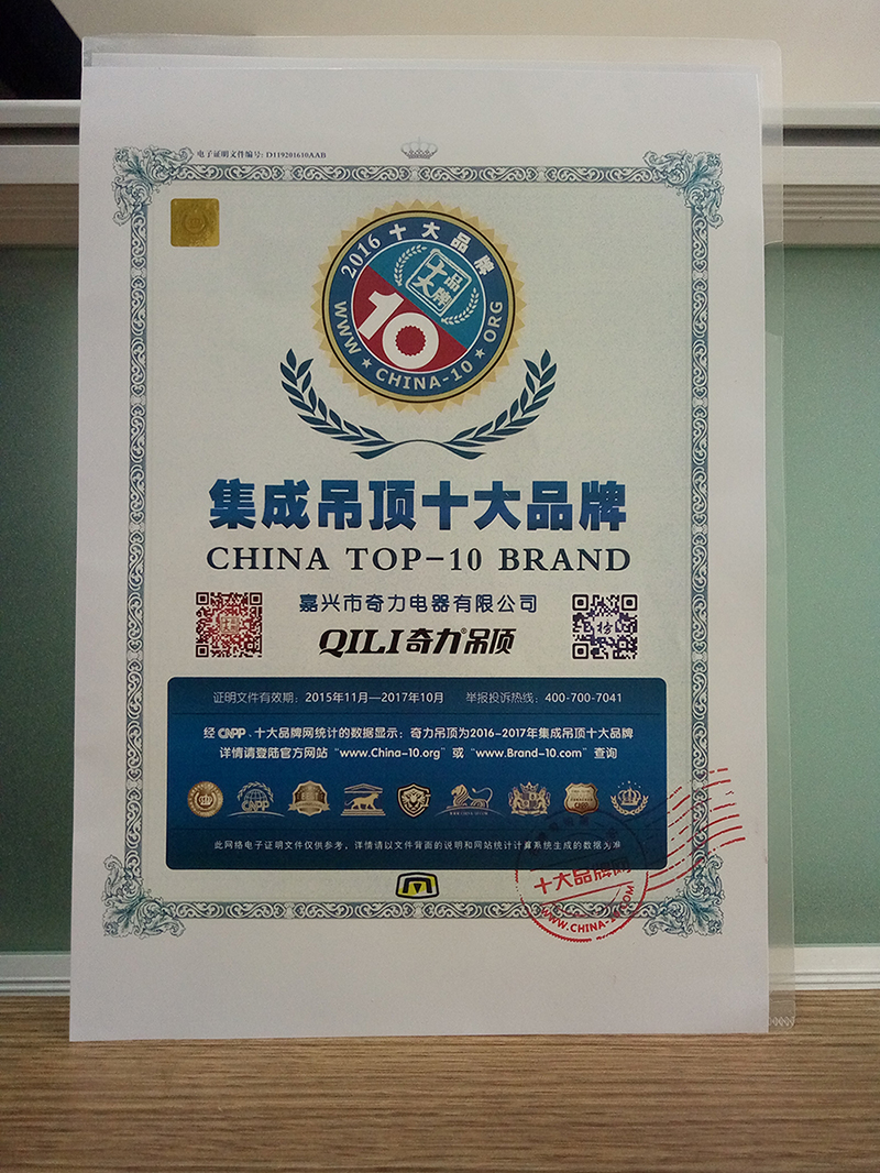 十大品牌的數(shù)據(jù)是亞洲品牌數(shù)據(jù)研究院通過國家相關部門、品牌評價機構、統(tǒng)計資料、市場調查數(shù)據(jù)、媒體互聯(lián)網(wǎng)、網(wǎng)友點擊投票,是大數(shù)據(jù)、云計算、數(shù)據(jù)統(tǒng)計真實客觀呈現(xiàn)的結果。由買購網(wǎng)聯(lián)合品牌權威機構舉辦的十大品牌評選活動于近日落下帷幕,行業(yè)十大品牌由此揭曉。奇力吊頂憑借自身的優(yōu)質服務、獨特風格、產品品質、用戶口碑及品牌影響力等,獲得消費者的認可,榮獲“2016年度集成吊頂十大品牌稱號”。