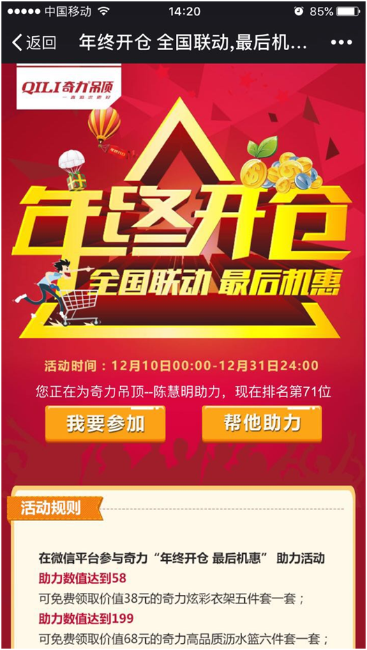 本次“年終開倉 最后機(jī)惠”還有一項微信助力活動,您可以在微信平臺參與。