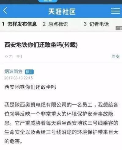 早前,一個自稱是某電纜公司員工的人發(fā)帖爆料,說西安地鐵3號線的電纜供應(yīng)商提供了不合格的電纜。