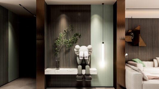 當(dāng)?shù)蹴斉c空間完美融合,便賦予了空間美的想象。大尺寸扣板吊頂,利用藝術(shù)性的設(shè)計(jì)語言塑造出空間的高級感。